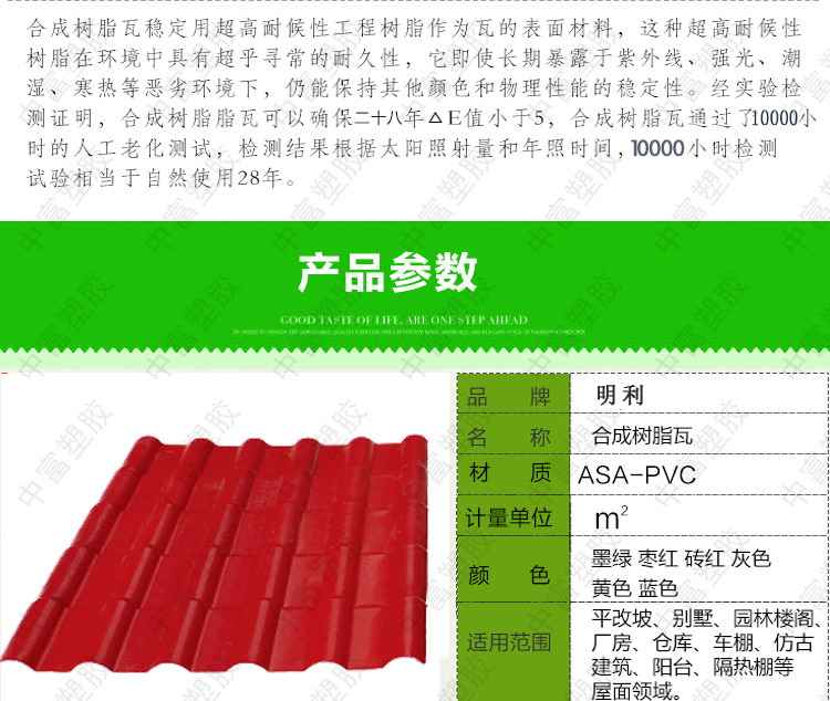 提供合成树脂瓦、塑钢瓦、仿古瓦、木塑地板等解决方案